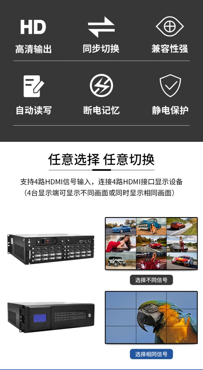流暢顯示不卡頓、多種接口混插、自動(dòng)管理、斷電保護(hù)
