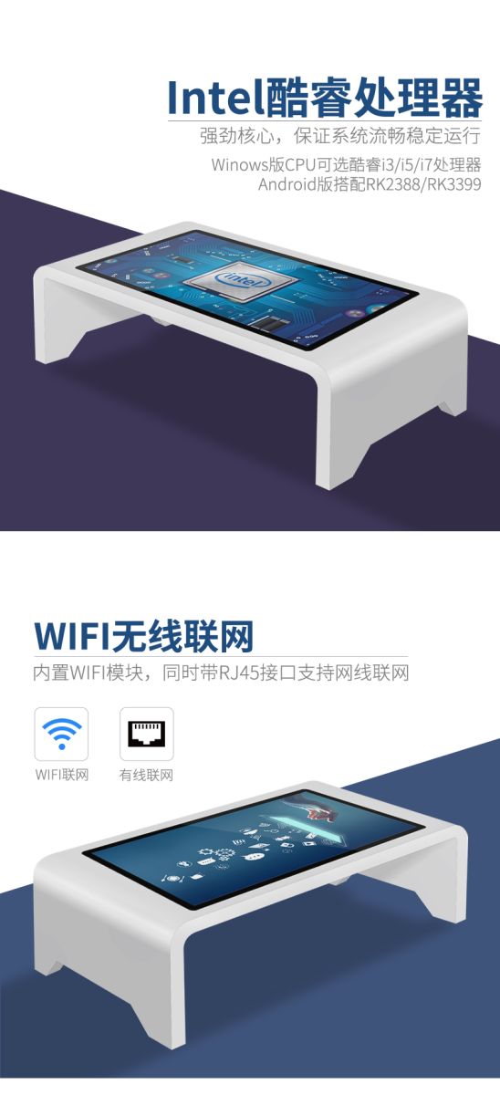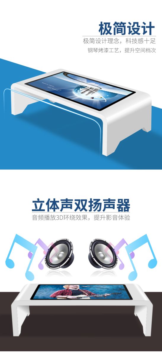 觸摸茶幾采用全新電容觸摸屏支持十點(diǎn)觸摸,支持多種手勢(shì)操作。