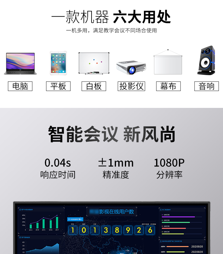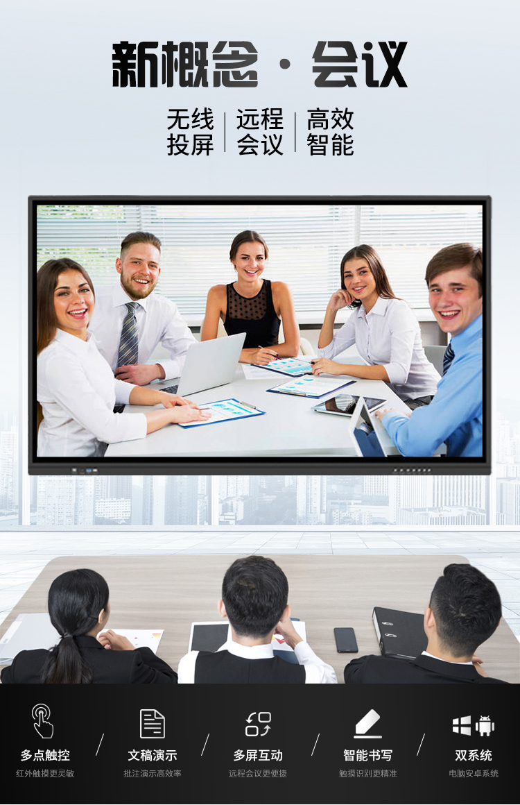 無線傳屏、紅外觸摸書寫、免費視頻會議、Android8.0&Win10雙系統(tǒng)