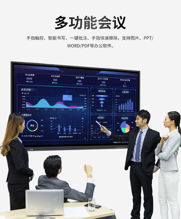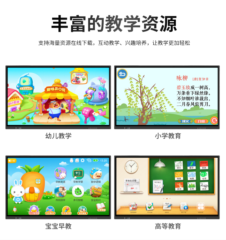 【產(chǎn)品優(yōu)勢】多點觸控、文稿演示、多屏互動、智能書寫、Windows 安卓雙系統(tǒng)。